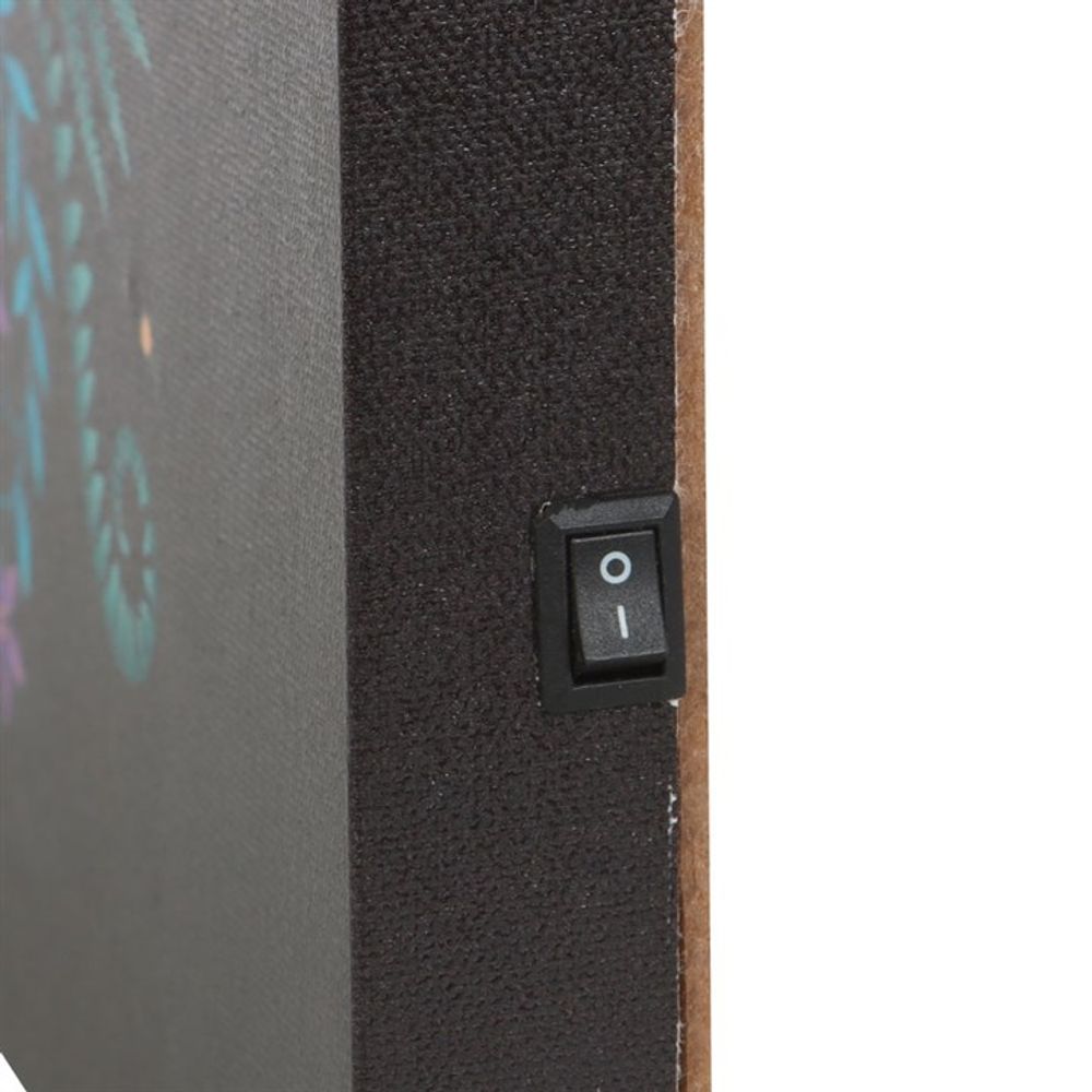 Add a touch of magic to your space with this 30x30cm light-up wall canvas. Features an ethereal luna moth illustration with embedded LED lights to create a mesmerizing glow. Requires 2 x AA batteries.
